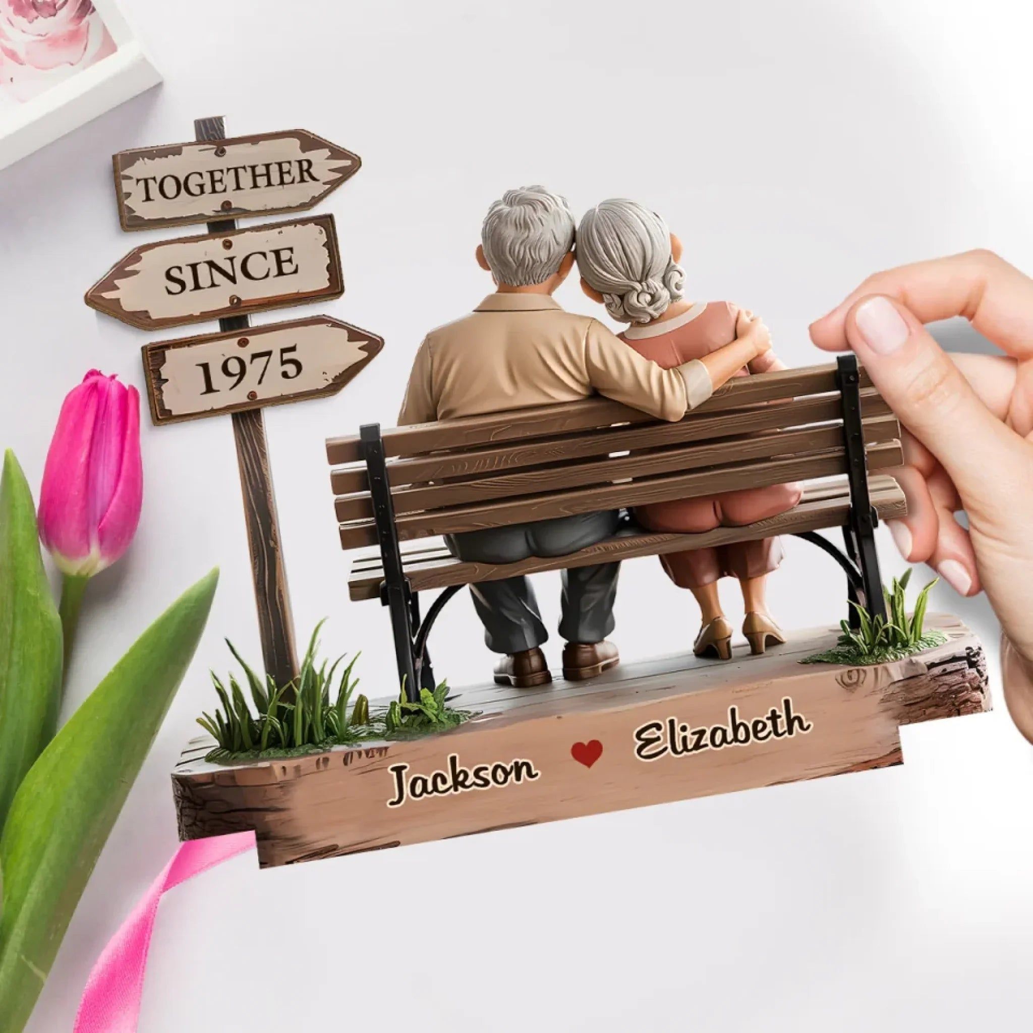 Couple personnalisé personnalisé Double couche panneau en bois avec support plat-cadeau de pendaison de crémaillère, anniversaire